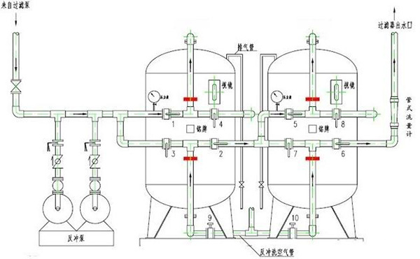 4.壓力式濾池反沖洗強度高,使濾層沖洗均勻、徹底不會形成死角,反洗時間短,過慮周期長,延長濾料使用壽命。(如圖3)